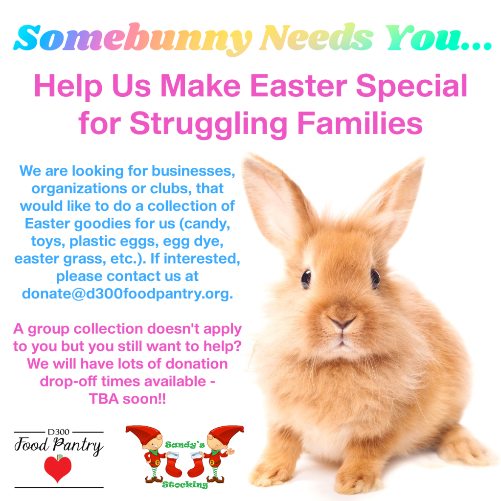 The D300 Food Pantry does more than just offer food to our families, because being healthy means more than just the body. Part of our mission is providing resources beyond food that helps create stronger, healthier and happier kids. We also have special projects for when the kids go back to school or for the holidays.