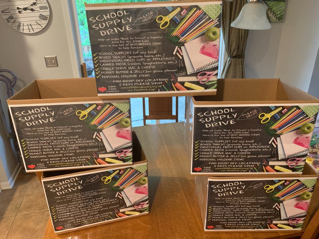 Each year, the D300 Food Pantry works to make back to school hopeful for our area kids in need. We collect: